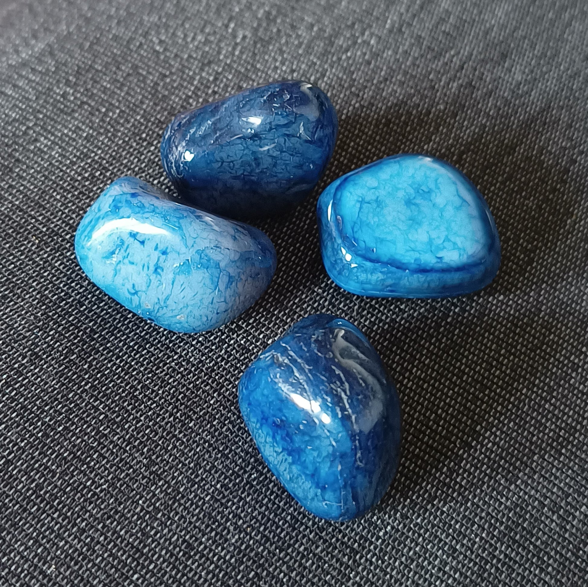 Blå Agat är i grunden en naturlig brun Agat som har färgats för att få ett mer attraktivt utseende. Trots att det är en färgad sten är detta en äkta kristall i grunden.