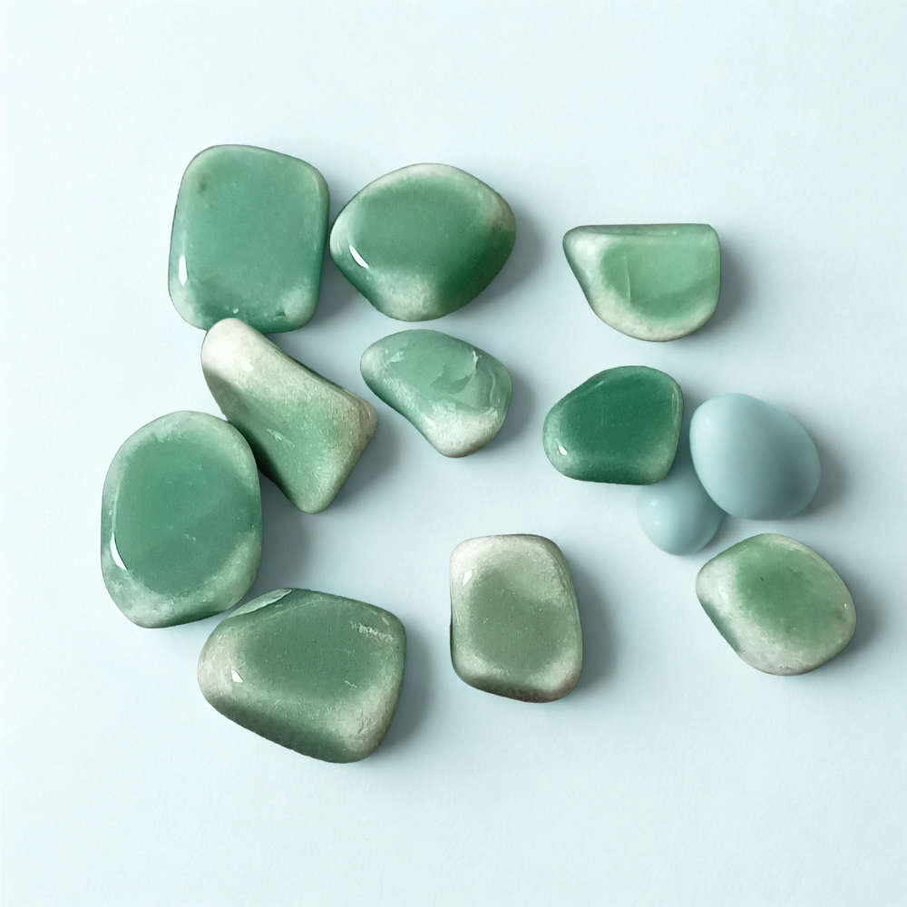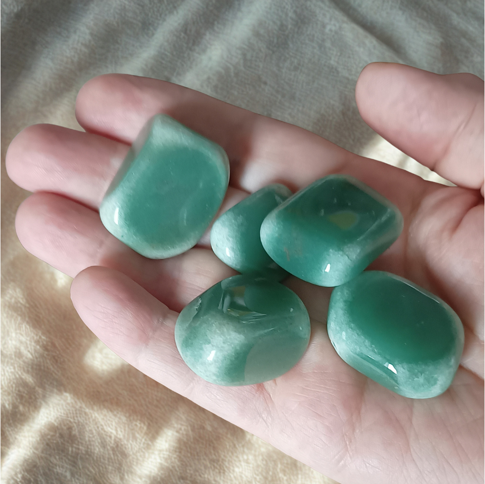 Grön Aventurin är en kristall som tillhör Aventurin-familjen och består i grunden av kiseldioxid och kvarts. Den gröna färgen uppkommer naturligt av kromglitter i kiselsyra som innesluts av kristaller under tillväxten. Aventurin har fått sitt namn från det italienska orden a ventura vilket översätts till ”av en slump”. Namnet gavs i samband med sökandet av en annat ämne då man stötte på kristallen.